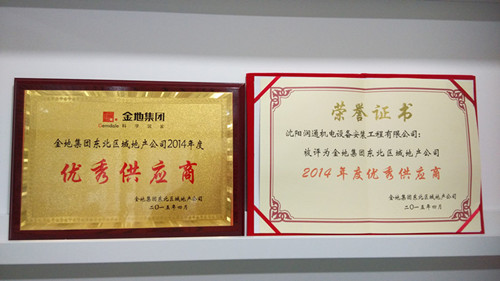 喜賀沈陽潤通機(jī)電設(shè)備安裝工程有限公司被評為金地集團(tuán)東北區(qū)域地產(chǎn)公司2014年度優(yōu)秀供應(yīng)商,這不僅說明潤通得到了市場的認(rèn)可,更印證了我們的努力是值得的。我們執(zhí)業(yè)以心,為您雕琢傳世精品;我們執(zhí)業(yè)以信,與您攜手共贏!