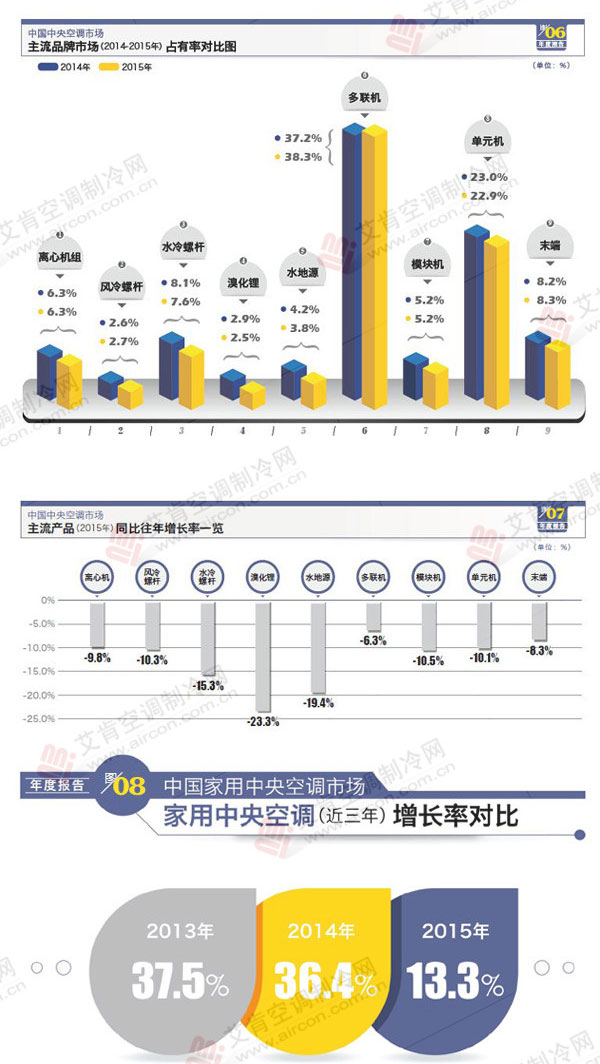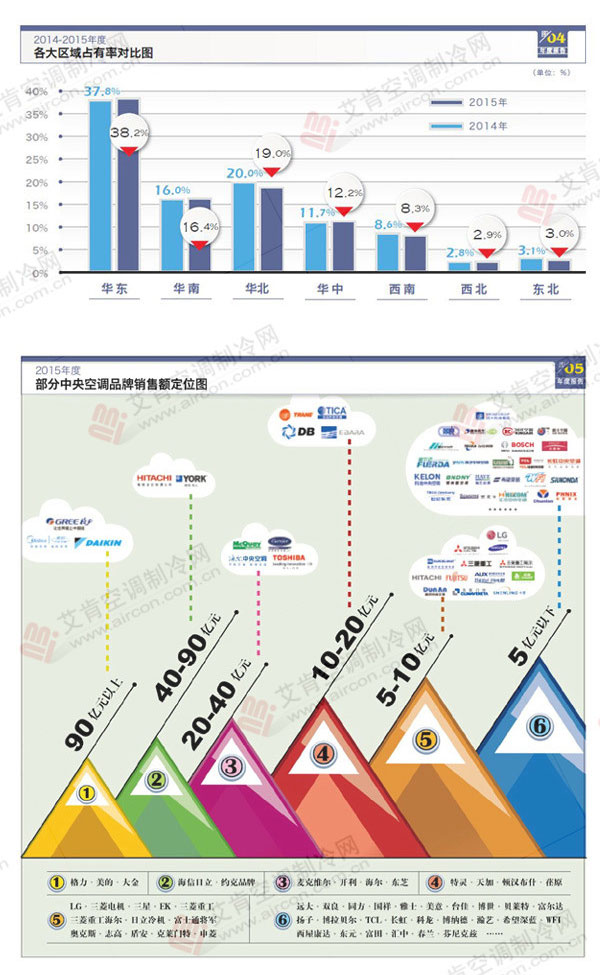 2015年度的中央空調(diào)市場,遭遇宏觀經(jīng)濟(jì)環(huán)境影響出現(xiàn)下滑在意料之中。根據(jù)艾肯空調(diào)制冷網(wǎng)統(tǒng)計(jì),2015年中國中央空調(diào)市場的整體容量約為660億元,同比2014年下滑9.6%。繼2009年市場下滑后的第二次下滑,且下滑幅度也創(chuàng)近十年之最。